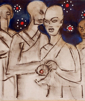 Didier Saint Melin is a strong man of passion whose search for meaning in the universe translates to his canvasses. His impressive works attract the viewer and create a feeling of inquisitiveness as to their message and origin. The magic of creating for him is to work intuitively letting that which is unknown come to the surface. His paintings seem to grow out of the depths of his being from his heart and soul. During the process it is apparent that he paints the way he feels at the time.
